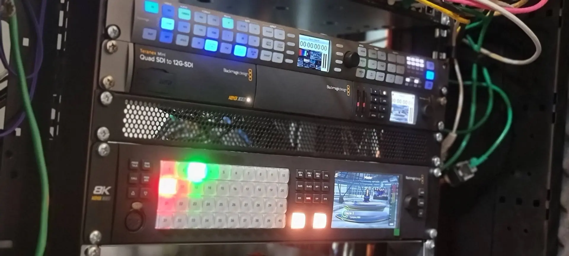 Der Technikraum beherbergt die gesamte technische Infrastruktur, die für den Betrieb des Studios notwendig ist. Hier befinden sich Server, Signalverstärker und andere Systeme, die die Produktion am Laufen halten.